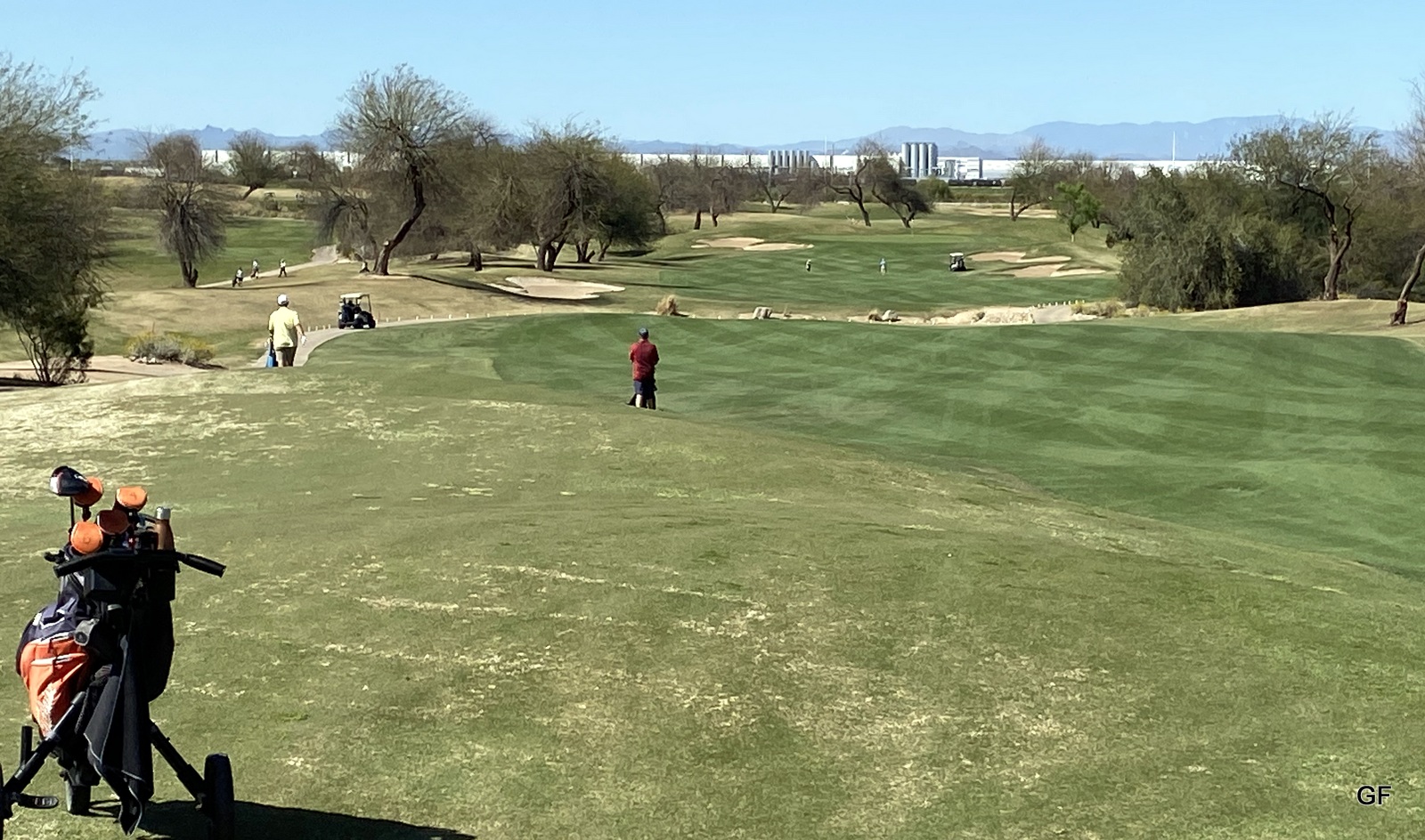 Later, Mike, Dennis, Kenny, and myself played Falcon Dunes, the more exclusive course at Luke AFB only for military and vets. We had a very late 3:45 tee time so we didn't finish. We went back to the condo and had burgers, potato salad, and beers afterwards.