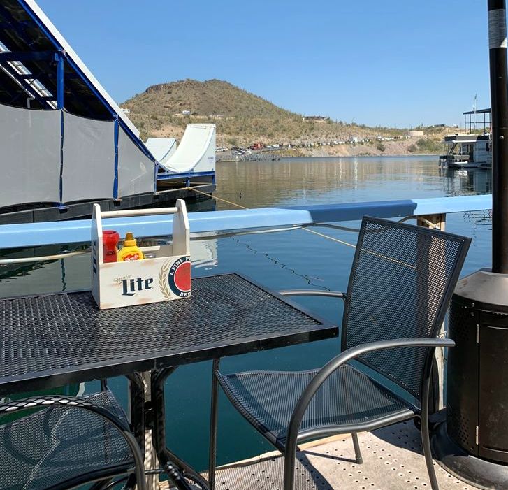 We were going to do a hike up the ridge of nearby Daisy Mountain. However, AllTrails (app) failed to mention that the trailhead is inside a private golf course. We made several valiant attempts from different angles before we finally gave up. Instead we opted to drive out to Lake Pleasant for lunch. Our first choice was Scorpion Grill.