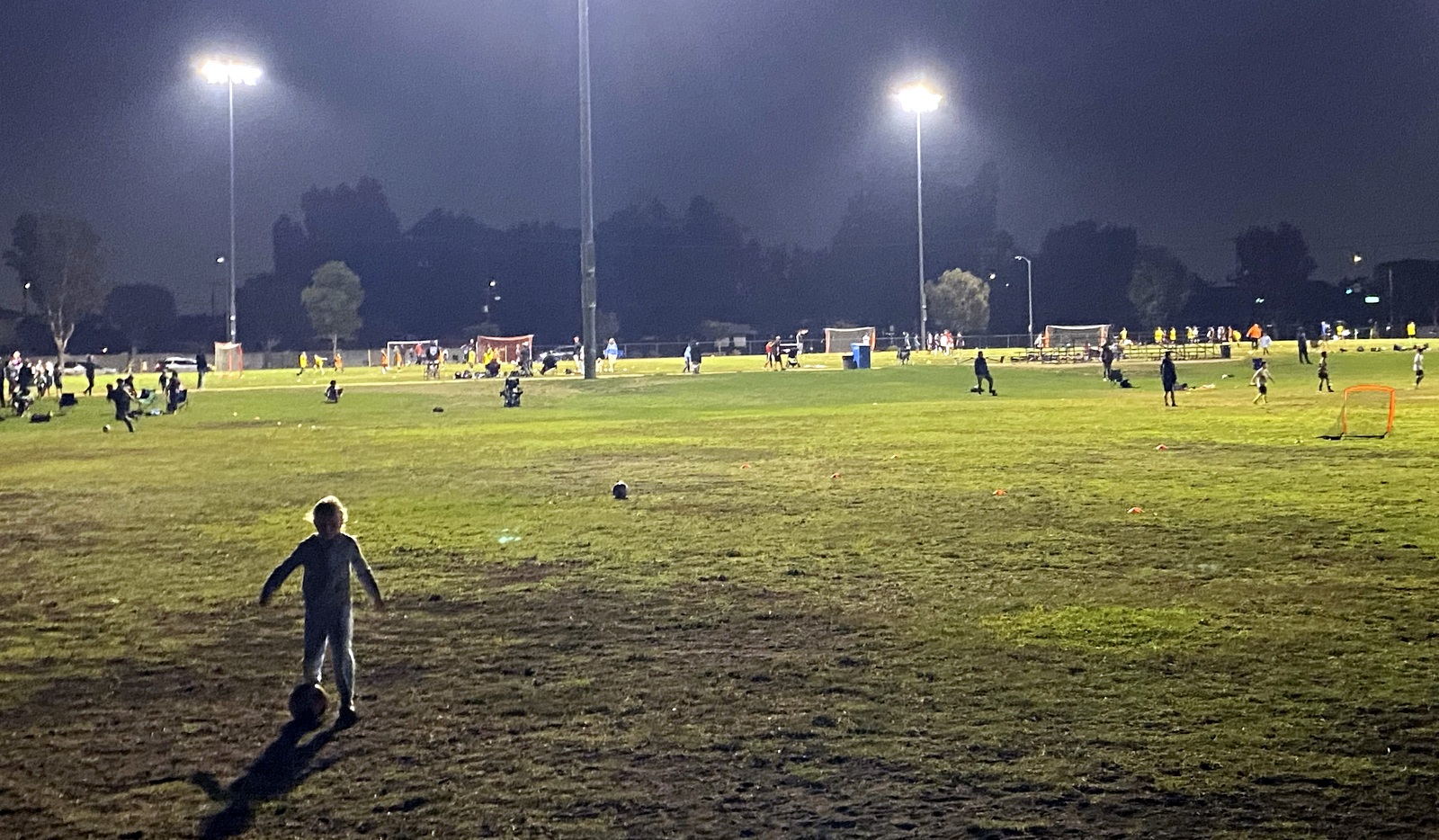 | Cora's team was practicing while Isla and I played nearby. |