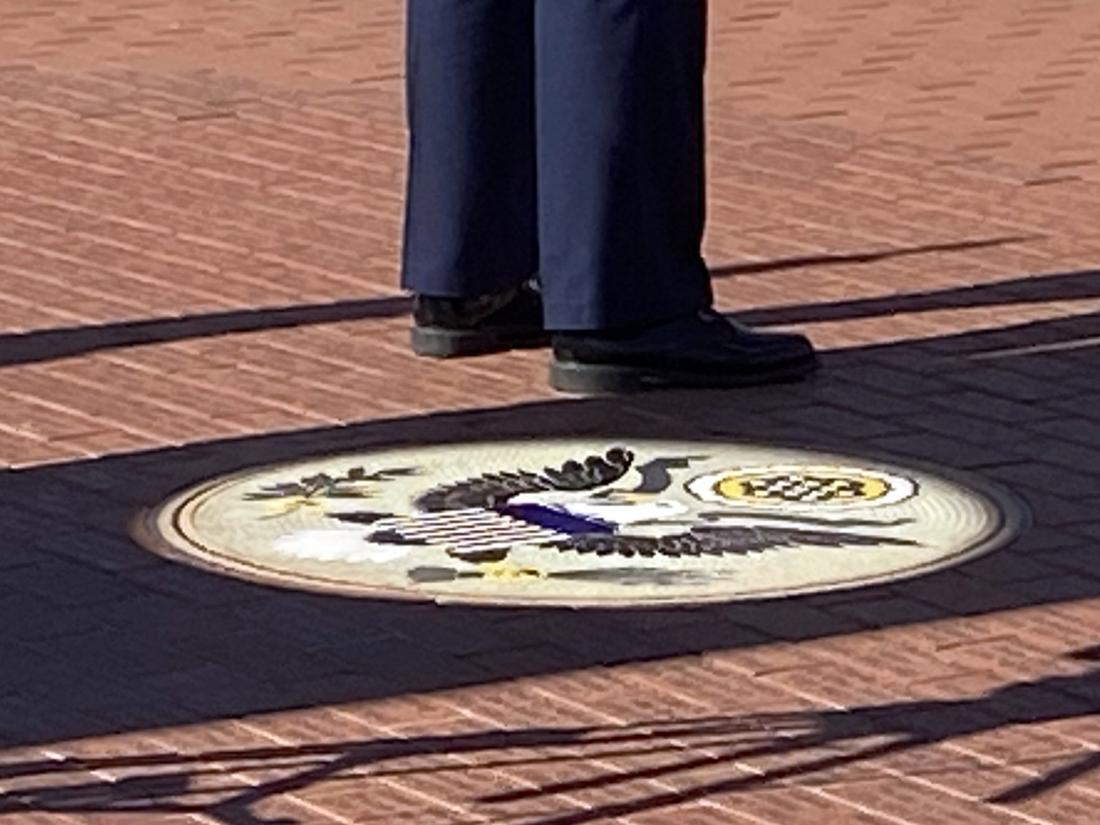 | On 11/11 (Veterans Day), at 11:11am, the sun aligns through the hole to shine perfectly on a plaque at the base of the pillars. |